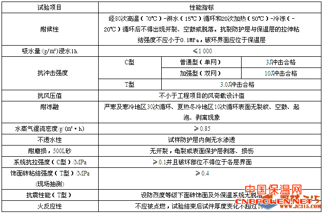 3.2.1 胶粉聚苯颗粒外保温系统性能指标应符合表3.2.1-1的要求,并应特别注意耐候性试验的结果。