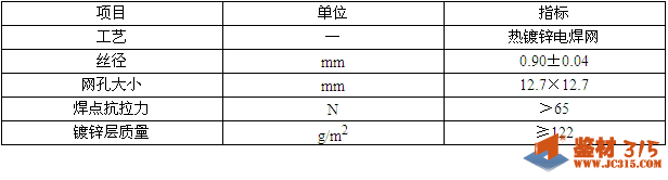 热镀锌电焊网(俗称四角网)应为后镀锌,性能符合QB/T 3897-1999的规定,并满足表3.2.17-1的要求。