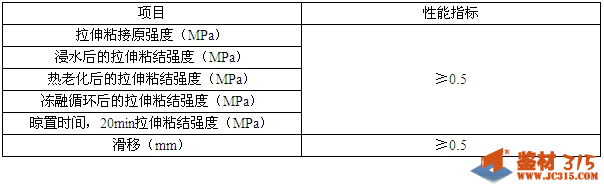 面砖胶粘剂的性能指标应符合表3.2.14-1的要求。