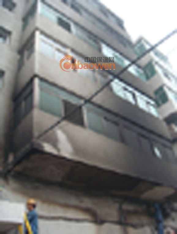 2010年9月5日晚12时,太原市纺织苑小区安居一号12-13单元之间停放的一辆宝来轿车发生自燃。火势迅猛,将车 旁的一个废弃木质衣柜及电线电缆引燃,火焰窜至六层楼高(如图)。但是庆幸的是该楼的外保温层采用了玻化微珠保温砂浆,其无空腔、A级防火的特点避免了一 场火灾,该事件无任何人员伤亡。