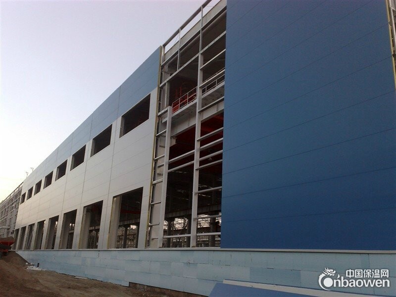 聚氨酯侧封岩棉夹芯板主要应用于工业厂房、仓库的屋面和外墙。过去的工业厂房屋面多采用预制混凝土板或石棉板。随着轻钢结构的迅速推广,聚氨酯侧封岩棉夹芯板也以其多项显著的优势取代了上述2种材料。在提供更好隔热效果的同时,夹芯板配合已成熟发展的轻钢结构,能够真正体现轻钢体系轻质、快速高效、布置灵活等一系列优势,因而在单层厂房建筑中已成为首选的方案。而对于多层工业厂房,除了顶屋的屋面可采用夹芯板外,外墙也可利用聚氨酯侧封岩棉夹芯板作灵活的布置,通过彩涂板多变的色彩和形状达到美化建筑外观的目的。对于恒温恒湿要求的工业建筑,采用热工性能优于砖墙的夹芯板作为围护材料,可大大节约建成后的运营成本。