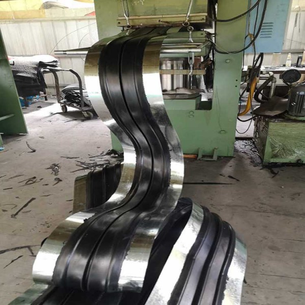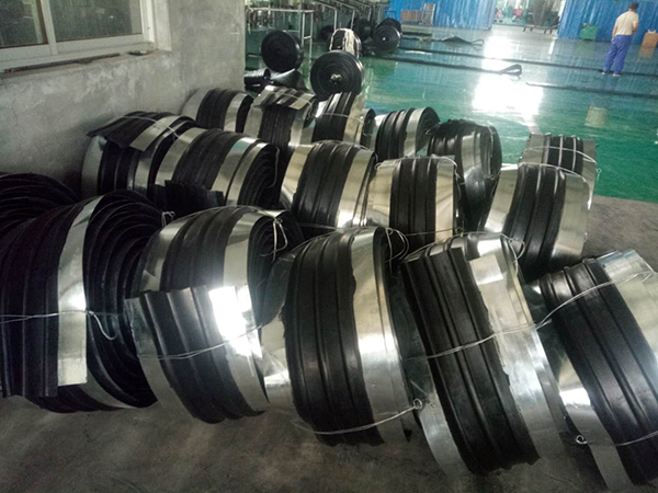 5、中埋式钢边止水带二侧的钢带装置时,钢边橡胶止水带在转角处应按R的半径需求转弯,并坚持钢带平坦,使钢带与混凝土有用的联系,起到杰出的止水作用。
