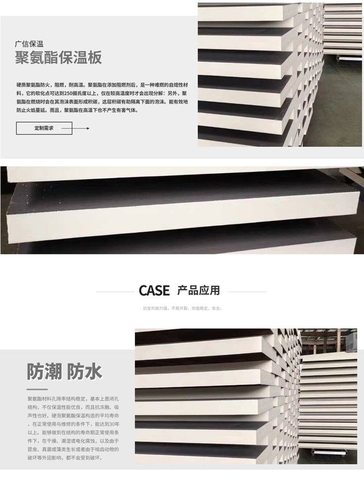 2、保温、防水、隔音。 聚氨酯硬泡保温层吸水量极低,经实验表明,每增加1%v/v湿气含量,其导热系数仅仅上升约3%。同时,由于聚氨酯硬泡保温层具闭孔结构,使之拥有优良的隔音功能,可以提供舒适、安静的室内环境。