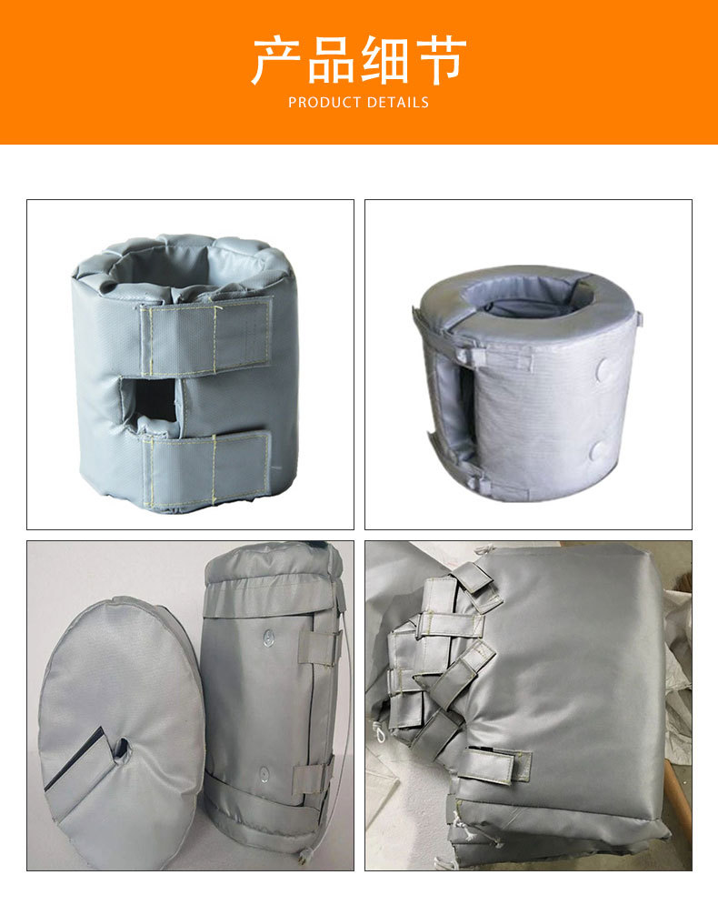 结构组成:它采用耐高低温性能优良防火保温材料;由内层、隔热层、防护层三层组成,根据设备的具体形状设计缝制而成的。